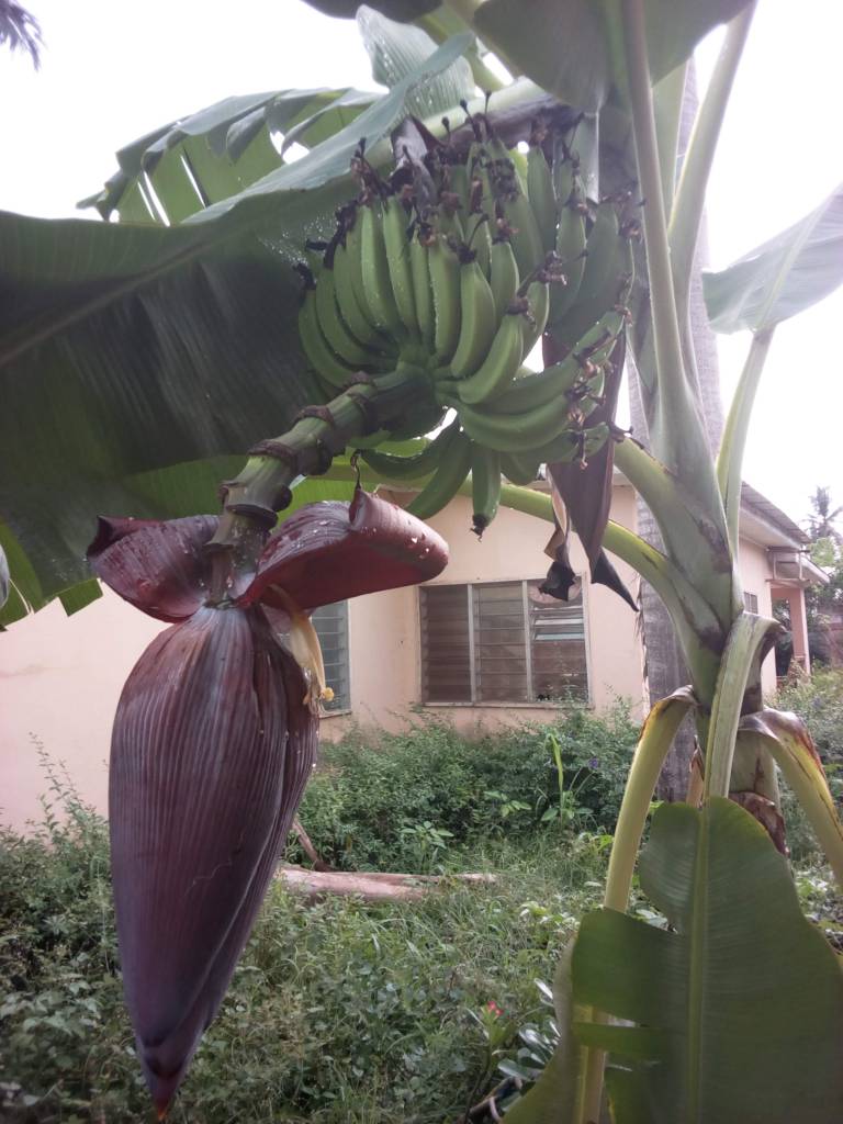 Mon bananier à Ouidah. Il a fleuri juste avant mon départ, je n’ai pas pu manger ses fruits. Sniff !