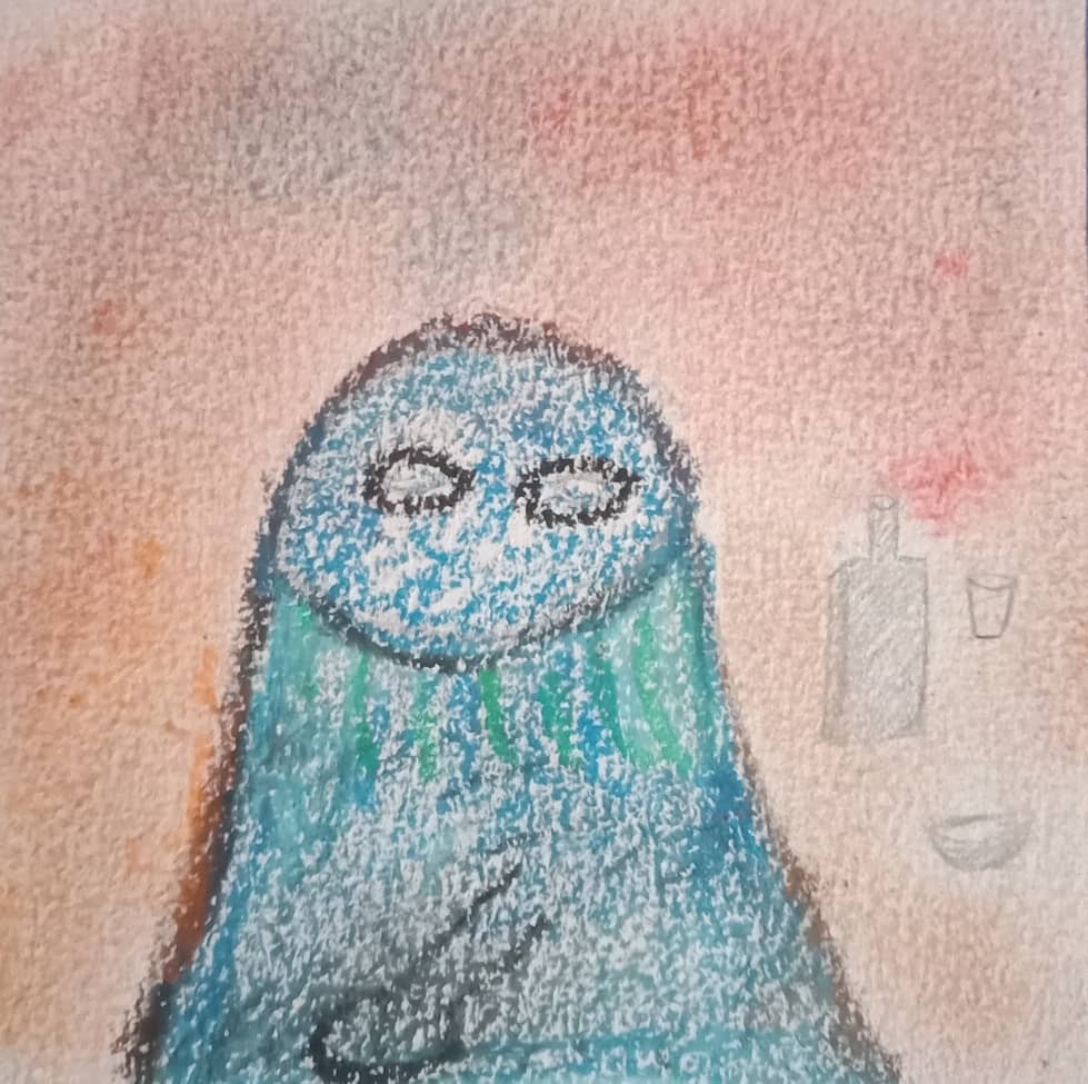 Awandjo, pastel à l’huile, 10×10 cm, 13/12/24
