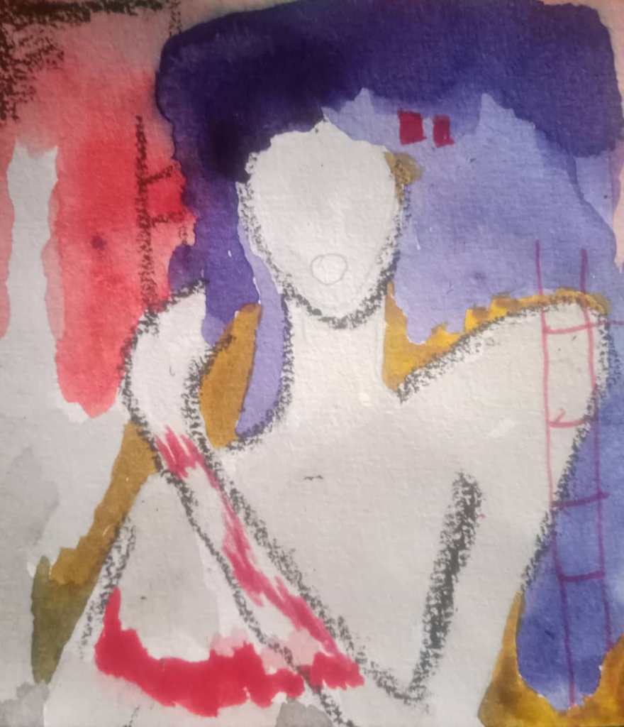 L’expression, encres acryliques, pastel gras, 10×10 cm, 29/01/25