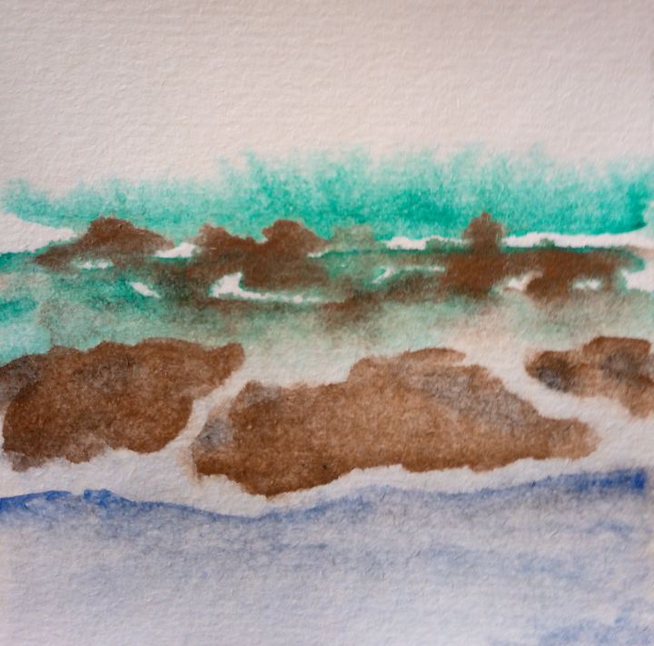 Écueils, aquarelle, 10×10 cm, 13/02/25
