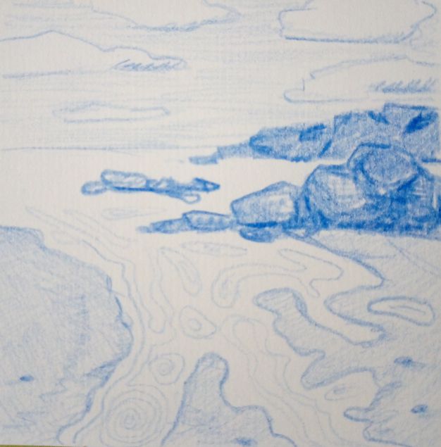 Rivage, crayon de couleur, 10×10 cm, 14/02/25