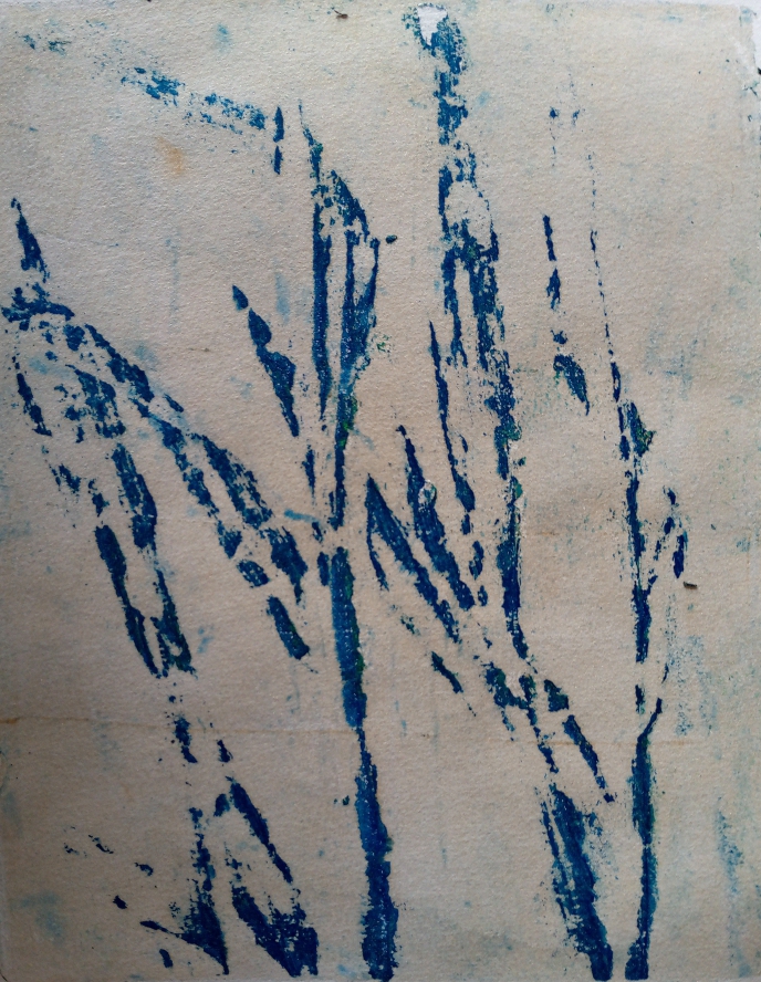 Celle-ci, c’est juste le reste de peinture de la précédente, j’ai repassé une couche d’acrylique argentée pour réactiver la plaque. Elle me plait beaucoup. J’ai décidé de l’agrandir en dessin. (voir plus bas)